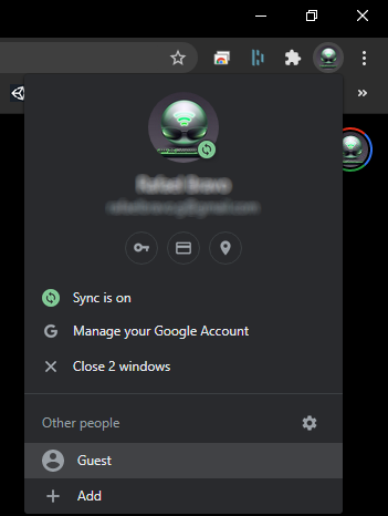 Una función muy útil si alguien te pide prestada tu computadora, probablemente no quieras que está persona tenga acceso a todas tus cuentas que mantienes abiertas, es ahí en donde entra en juego esta función. Al dar click sobre tu avatar de Google en la esquina superior derecha del navegador veras la opción de acceder como Invitado o Guest, al seleccionar esta opción, el navegador pasará a una sección en donde pareciera como recién instalado y sin cuenta alguna abierta.