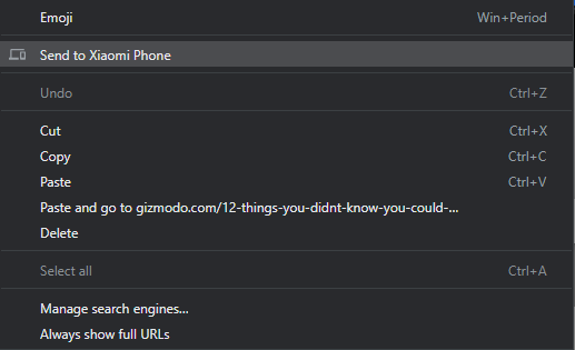 Si hay una página web que desees ver en tu teléfono u otro dispositivo, haz clic con el botón derecho en la URL en la barra de direcciones en la parte superior de la interfaz de Chrome, luego elija Enviar a tus dispositivos. En este caso, “tus dispositivos” son todos los dispositivos en los que hayas instalado Chrome, hayas iniciado sesión con tu cuenta de Google y hayas activado la sincronización. Elije una de las opciones de la lista que aparece y la URL en cuestión se envía instantáneamente al otro dispositivo.